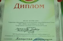 28 февраля 2020 года на базе МАОУ "СОШ № 48" по итогам 14 Республиканской научно-практической конференции "Отчизны милые черты в творчестве поэтов и писателей Нижнего Прикамья", посвященной 100-летию образования ТАССР на учитель татарского языка - Латыпова Эльвера Галимзяновна награждена дипломом Призера в номинации "Татарская литература".