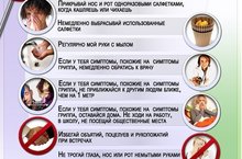 В случае легкой (включая стертые и субклинические) формы гриппа, температура тела может оставаться нормальной или повышаться не выше 38°С, симптомы инфекционного токсикоза слабо выражены или отсутствуют. В случае среднетяжелой(манифестной) формы гриппа температура повышается до 38,5-39,5°С и отмечаются классические симптомы заболевания: интоксикация,обильное потоотделение,слабость,светобоязнь,суставные и мышечные боли,головная боль и др.При развитии тяжелой формы гриппа температура тела поднимается до 40-40,5°С. В дополнение к симптомам, характерным для среднетяжелой формы гриппа появляются признаки энцефалопатии (психотические состояния, судорожные припадки, галлюцинации), сосудистые расстройства (носовые кровотечения, точечные геморрагии на мягком небе) и рвота. При гипертоксической форме гриппа возникает серьезная опасность летального исхода, особенно для больных из группы риска. Если грипп протекает без осложнений,лихорадочный период продолжается 2-4 дня и болезнь заканчивается в течение 5-10 дней. Возможны повторные подъемы температуры тела, однако они обычно обусловлены наслоением бактериальной флоры или другой вирусной респираторной инфекции. После перенесенного гриппа в течение 2-3 недель могут сохраняться явления постинфекционной астении: утомляемость, слабость, головная боль, раздражительность, бессонница и др. Основные симптомы гриппа и их локализация Орган Название воспалительного процесса Симптомы Нос ринит насморк Зев фарингит боль в горле Гортань ларингит хрипота Трахея трахеит кашель Бронхи бронхит кашель