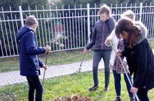 Ученики 7-х классов сегодня трудились и помогали приводить в порядок Бульвар Энтузиастов. Санитарно-экологический месячник г.Набережные Челны 10.10.2018