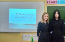 Учащиеся педагогического класса провели классный час в 1В классе на тему "Доброе слово, что ясный день". Цель этого классного часа-поговорить с первыми классами об общих человеческих ценностях. Показать какие ценности важны для людей.