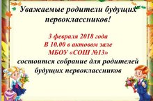 В МБОУ «СОШ №13» в 2018/2019 учебном году будут открыты: три первых класса -75 мест.