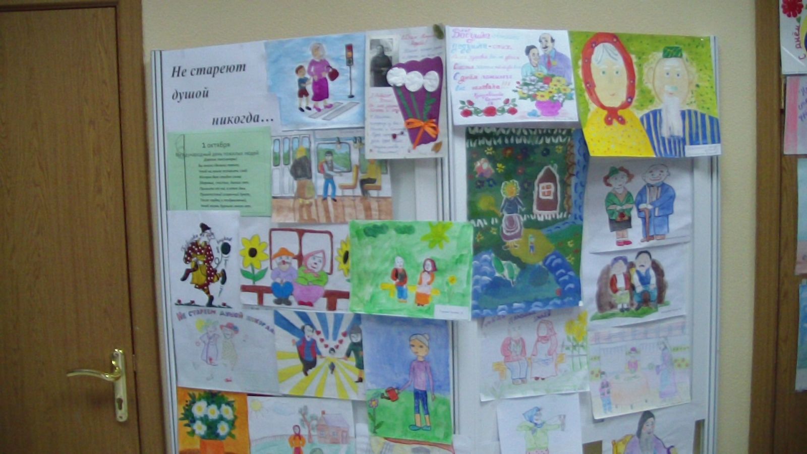 Проведен открытый классный час, посвященный дню Пожилых людей «Старость в радость ». Проведена беседа о таких понятиях как «Добро» и «Милосердие», говорили пословицы, читали стихи. Посмотрели презентации детей по темам: 1. Традиция почитания старших; 2. Пожилой человек в нашем обществе; 3. Военное прошлое наших стариков; 4. Пожилой человек в семье. Слушали выступление гостей. В течении дня в холле на 1 этаже работала выдвижная выставка «Не стареть душою никогда!». Дети выпускали стенгазеты, где описывали любовь к своим самым близким родным людям.