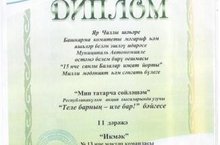15 нче санлы Балалар иҗат йортында “Мин татарча сөйләшәм” республикакүләм акциясенең “Теле барның – иле бар” дигән муниципаль турына нәтиҗәләр ясалды. Бу турда 13 нче мәктәпнең “Икмәк” командасы 2 нче дәрәҗә диплом белән бүләкләнде. Аларны әзерләүче татар теле һәм әдәбияты укытучылары Латыпова Э.Г., Лотфуллина З.З.га рәхмәт белдерәбез.