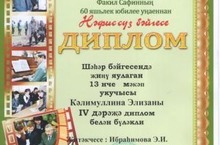 15 нче Балалар иҗат йортында 1-4 сыйныфлар өчен “Мин татарча сөйләшәм” республикакүләм акциянең “Шул тел белән әбкәм әкият сөйләгән” дип аталган бәйге үткәрелде. Бу бәйгедә 3Б сыйныфы укучылары татар теле һәм әдәбияты укытучысы Лотфуллина З.З. җитәкчелегендә А.Алишның “Ил гизүчеләр һәм хәйлә коручылар” әкиятен сәхнәләштерделәр. Укучылар 1 нче дәрәҗә диплом белән бүләкләнделәр. Аларны бу уңышлары белән котлыйбыз.