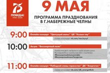 День Победы в Набережных Челнах: программа онлайн-мероприятий. Несмотря на ограничительные меры, празднование 75-летней годовщины Дня Победы все же состоится. Большая часть мероприятий пройдет в Интернете.Программу празднования Дня Победы можно посмотреть, перейдя по ссылке - ПРОГРАММА. -
