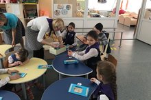 В декабре проводилась городская акция "Дети - детям" в рамках Декады инвалидов. Учащиеся 2 Г класса посетили д/с №103 "Тургай" группу детей с ОВЗ. С собой учащиеся 2Г класса принесли подарки в группу - игрушки. Провели игры с дошкольниками. А самое интересное - провели мастер-класс "Новогодняя открытка". Каждый сделал открытку своими руками. И дети, и взрослые получили много положительных эмоций.