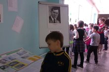Выставочный холл библиотеки пользуется популярностью среди наших учащихся. Здесь работает выставка "Красная ромашка", на которой лицеистам рассказывают о жизни и творчестве поэта-героя Мусы Джалиля. Ребята не только слушают, но и сами исполняют произведения автора.