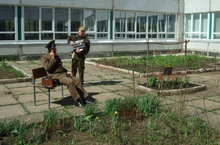 В честь 70-летия в ВОВ во внутреннем дворике школы была организована композиция из цветов и растений.