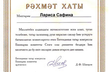 Бөтендөнья татар конгрессы “Укытучылар көне” уңаеннан “Сез иң гүзәл кеше икәнсез” дип исемләнгән бәйге уздырды. Ул 2022 елның 16 нчы сентябреннән алып 5 нче октябрьгә кадәр дәвам итте. "Сез иң гүзәл кеше икәнсез” бәйгесенә барлыгы 132 кеше үз хезмәтләрен юллады. Алар арасында мәктәбебезнең туган тел укытучысы Сафина Л.П. да бар. Сафина Лариса Петровна жюри игътибарына лаек булып конгрессның Рәхмәт хаты белән бүләкләнде.