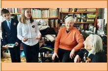 Городская акция "День героев Отечества". Тимуровский отряд "Юные Добродетели" в гостях у Гетты Александровны Якуниной, детство которой выпало на тяжёлые годы Великой Отечественной войны.