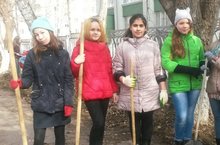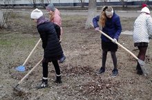 Ученики 7б класса на субботнике у памятника Афганцев 01.04.2017