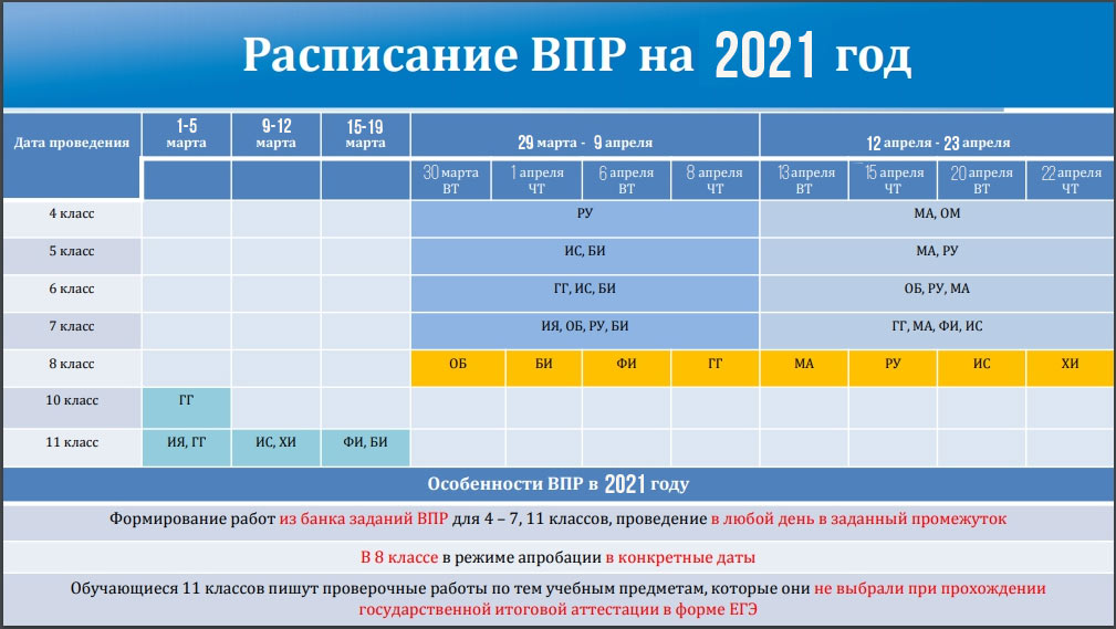 ВПР не проводятся во время каникул или после уроков.