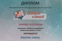 Ученик 4 класса принял участие в городском фото - конкурсе "Селфи с мамой" и занял 3 место. Поздравляем!