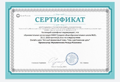 В осенней сессии, обучающиеся МБОУ «СОШ №20» получили возможность принять участие во Всероссийской неделе финансовой грамотности в онлайн – формате на портале www.dni-fq.ru