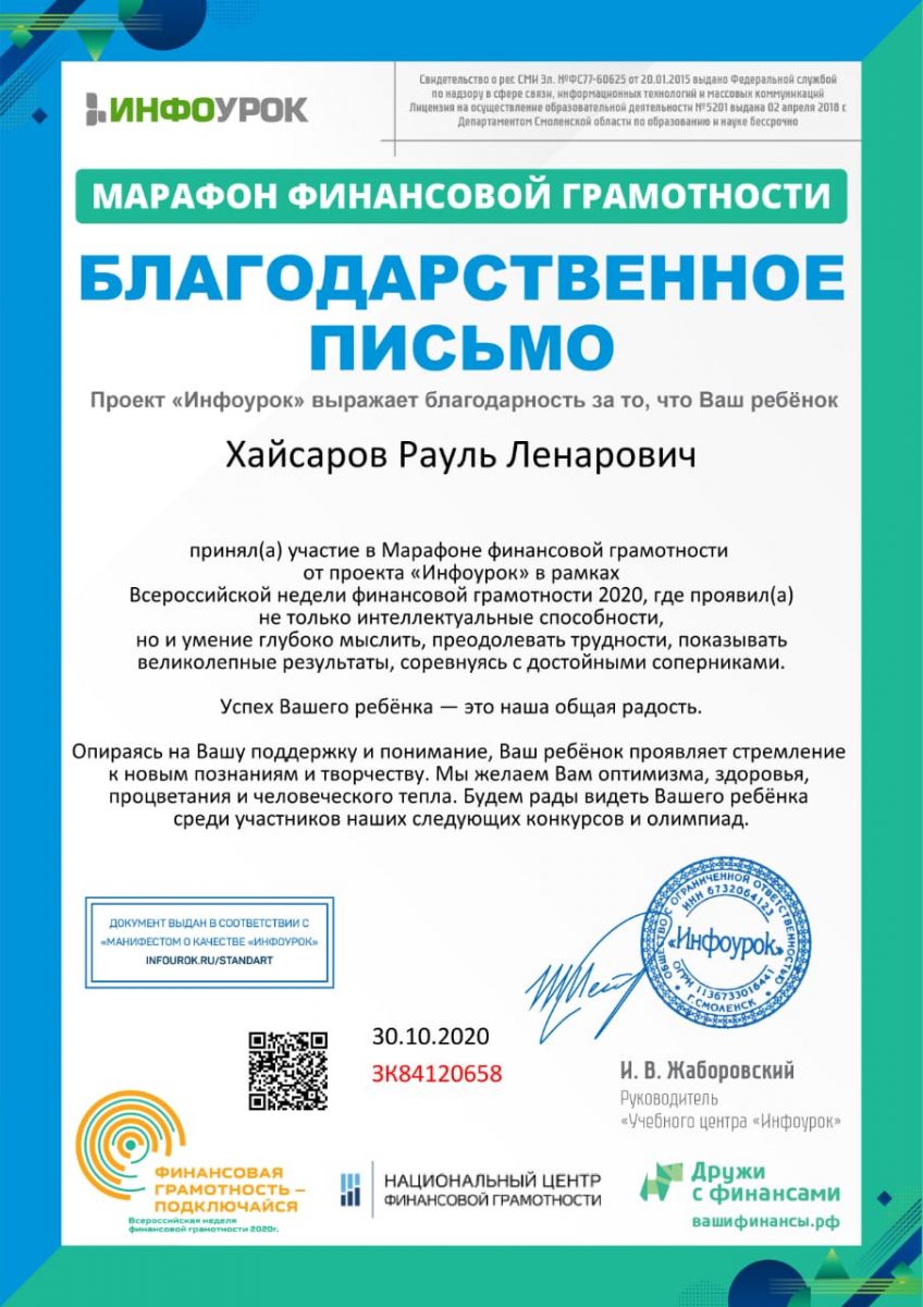 Финансовая грамотность 01.12.2020