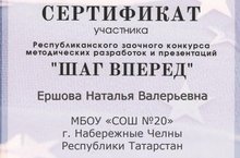 Педагог-организатор Ершова Наталья Валерьевна приняла участие в заочном этапе Республиканского конкурса методических разработок "Шаг вперед".