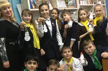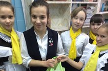 Тимуровцы вместе со своей гостьей Поповой Владой - ученицей 8б класса.