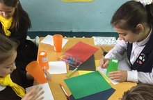 Тимуровский отряд школы организовал мастер-класс "Новогодняя открытка" для детей с ОВЗ. В мастер-классе приняла участие Попова Влада - ребенок инвалид . С помощью Тимуровцев она изготовила новогоднюю открытку.