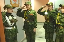 На фото начальник почетного караула - Мазитова Камилла (ученица 9 "а" класса - трижды постовец) производит смену караула.