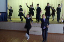 Ученики начальных классов ведут подготовку к праздничному концерту , посвященного Дню Матери. Репетиция. Разучивание нового танца.