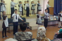 На концерт были приглашены ветераны, выступали активисты школьного самоупаравления, Тимуровцы и танцевальные группы 1-4 классов.