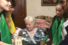 Посещение ветеранов на дому, общение и вручение сладких подарков, собранных силами учащихся школы.