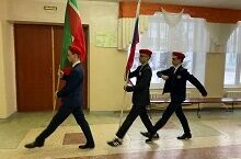Каждый понедельник в 8:00 на первом этаже школы знамённая группа из числа ЮнАрмейского отряда в составе 3 человек (Чепорнюк Илья 10 А класс, Кузнецов Павел 9Г класс, Козлов Александр 11 А класс) торжественно выносит флаг Российской Федерации и республики Татарстан,а дежурный класс в свою очередь исполняет гимны.