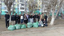 11 апреля обучающиеся 7 б класса убирали территорию сквера 15/26.
