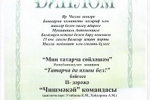 Поздравляем воспитанников объединения "Родничок" (научный руководитель Утябаева Е.М., Хайдарова А.А.), занявших II место в Республиканской акции "Татарча да яхишы бел!" 21.04.2014