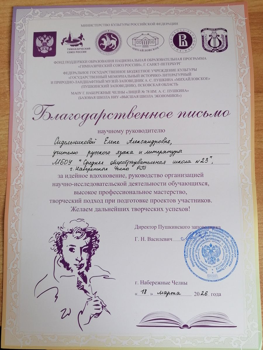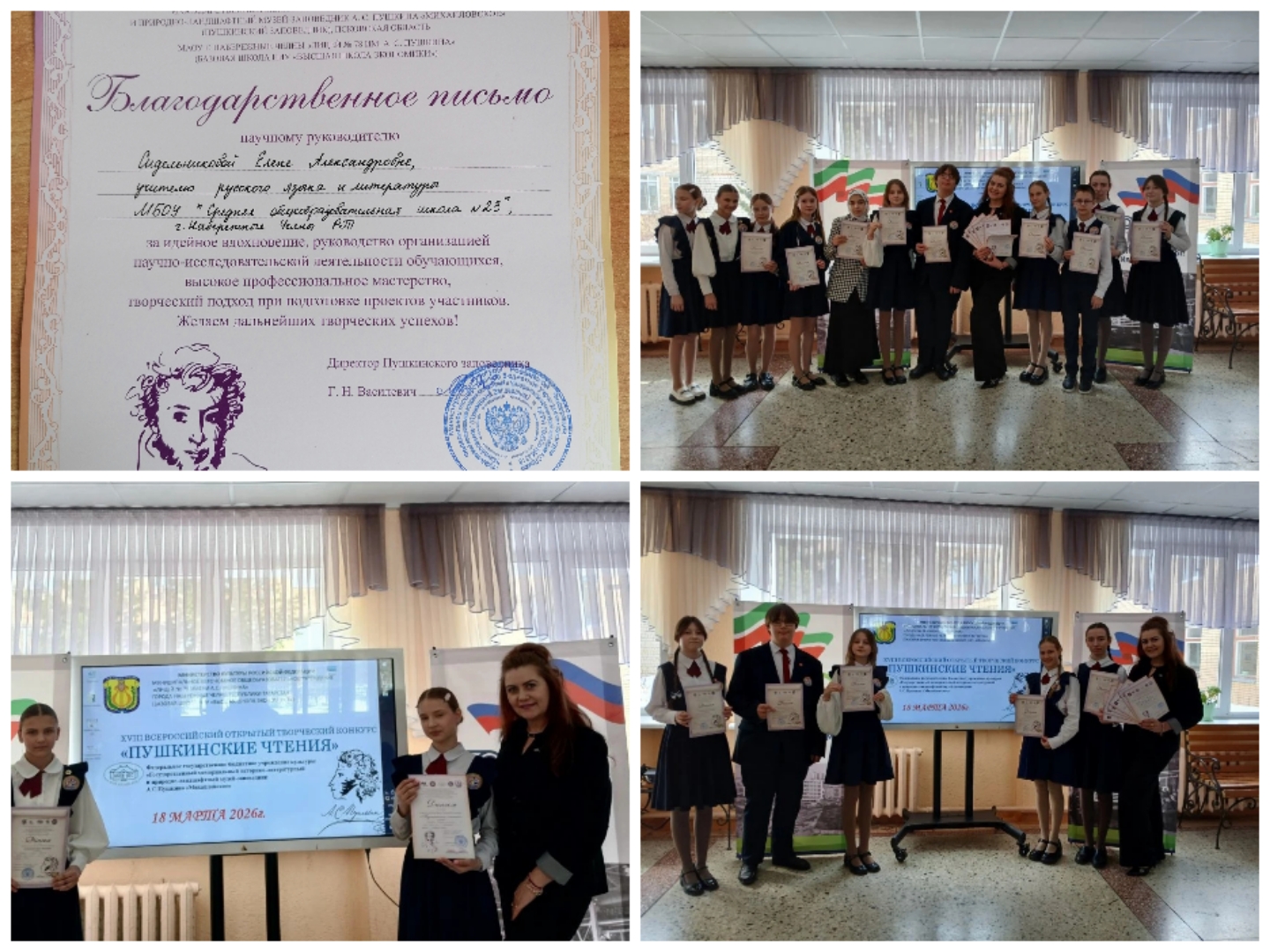 18 марта 2026 года на базе МАОУ «Лицей №78 им.А.С.Пушкина» прошел XVIII Всероссийский открытый творческий конкурс «Пушкинские чтения», инициированный «Пушкинским Заповедником».