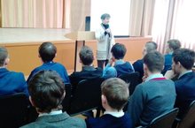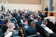 Выступление психолога детской поликлиники №6 Губенко Р.Н. перед учащимися восьмых классов. Юноши прослушали лекцию на тему: "Репродуктивное здоровье подростков. Профилактика вредных привычек раннего начала половой жизни".