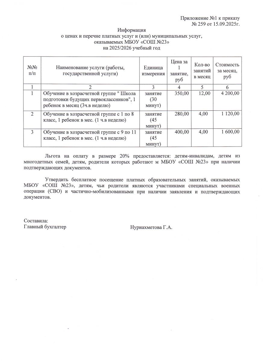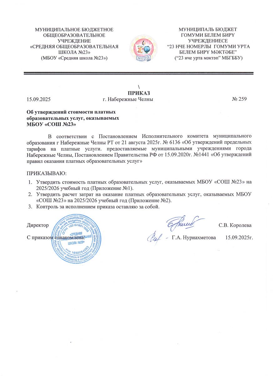 Приказ об утверждении стоимости платных образовательных услуг