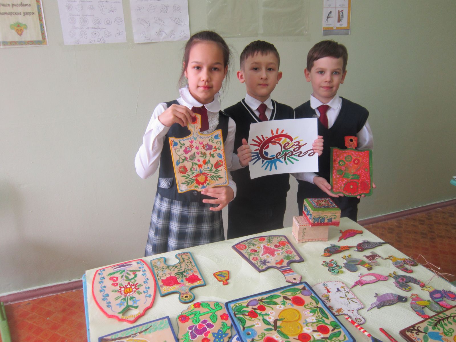 Опубликовано: 05.03.2018В школе был проведен конкурс детского народного творчества «Сувениры России» среди учащихся 1-4 классов в рамках Республиканского конкурса "Без бергә". Победителем в номинации "Декоративно-прикладные изделия" стала Новикова Елизавета, "Лучшая выставочная экспозиция" – Хуснуллина Замира. Будут защищать честь школы в городском туре. Желаем победы!