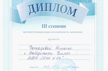 Юлиана Бочкарёва, ученица 10А класса – призёр научной Универсиады школьников по экономике