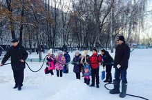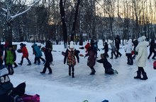 Весело и дружно учитель технологии Глушков Е. Г. и заместитель по АХЧ Шамсутдинов Р.Ю. с учащимися 3 класса проводят заливку катка.