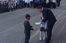 С поздравительной речью выступил директор школы М.Р. Ярмиев и торжественно вручил каждым Орлятам удовтоверения, как символ принадлежности к содружеству "Орлят".