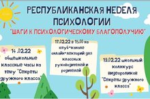 В период с 14 по 19 февраля в школе будет проведена Республиканская неделя психологии «Шаги к психологическому благополучию».