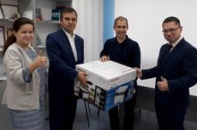 Депутаты Городского Совета Мухамадиев М.Ф. и Исмагилов И.И. подарили школе МФК (многофункциональное устройство).