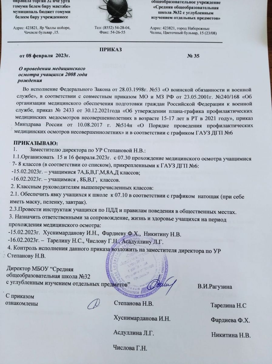 МБОУ «Средняя общеобразовательная школа №32 с углубленным изучением отдельных предметов» г. Набережные Челны - новости