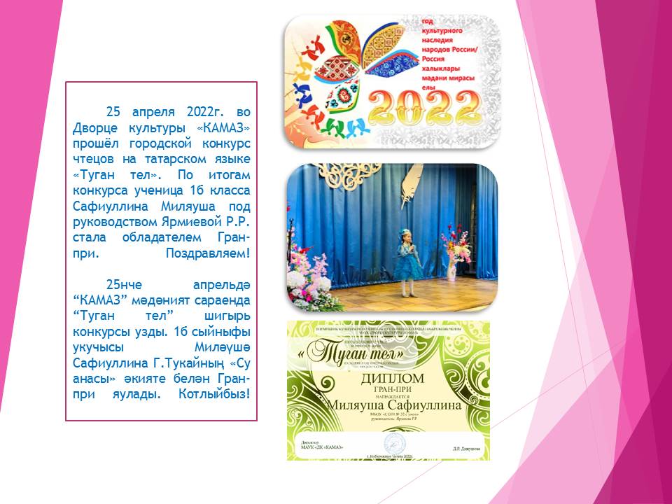 26 апреля 2022 года в школе состоялось мероприятие, посвященное 136-летию со Дня рождения Великого татарского поэта Г.Тукая