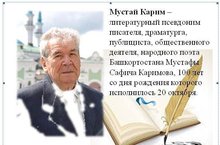 24 нче октябрь көнне 5 нче сыйныф укучылары белән Башкортостанның халык шагыйре Мостай Кәримнең 100 еллык юбилеена багышланган сыйныфтан тыш чара үткәрелде. Татар теле укытучысы Сәләхова Р.С. балаларны шагыйрьнең тормыш юлы һәм иҗаты белән таныштырды, Яруллина Г.С. бай презентация күрсәтте. Укучыларга М.Кәримнең үз тавышы белән рус һәм татар телләрендә укыган шигырьләре, җырчы Фидан Гафаров башкаруында шагыйрь сүзләренә язылган “Язмыштан узмышлар” җыры бик ошады. Чара ахырында әдип иҗаты турында фикер алышу булды.
