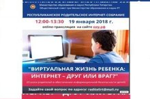 19.01.2018 года с 12.00 до 13.30 состоится Республиканское родительское интернет-собрание "Виртуальная жизнь ребёнка; интернет - друг или враг?"