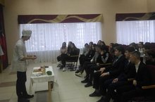 Сегодня с выпускниками 9-х классов прошла профориентационная встреча с представителями Торгово-технологического колледжа, созданного на базе предприятия ОАО «Челны Холод». Ребятам был продемонстрирован информационный видеоролик о данном образовательном учреждении, студенты колледжа провели мастер-класс по приготовлению закусок, была представлена презентация профессий и специальностей, по которым обучают в колледже. Выпускники смогли задать интересующие вопросы о правилах поступления и обучения в торгово-технологическом колледже. Встреча получилась интересной и познавательной!