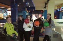 В 8б мальчики и девочки решили провести новогодние праздники по-разному: мальчики играли в пейнтбол, а девочки играли в боулинг.
