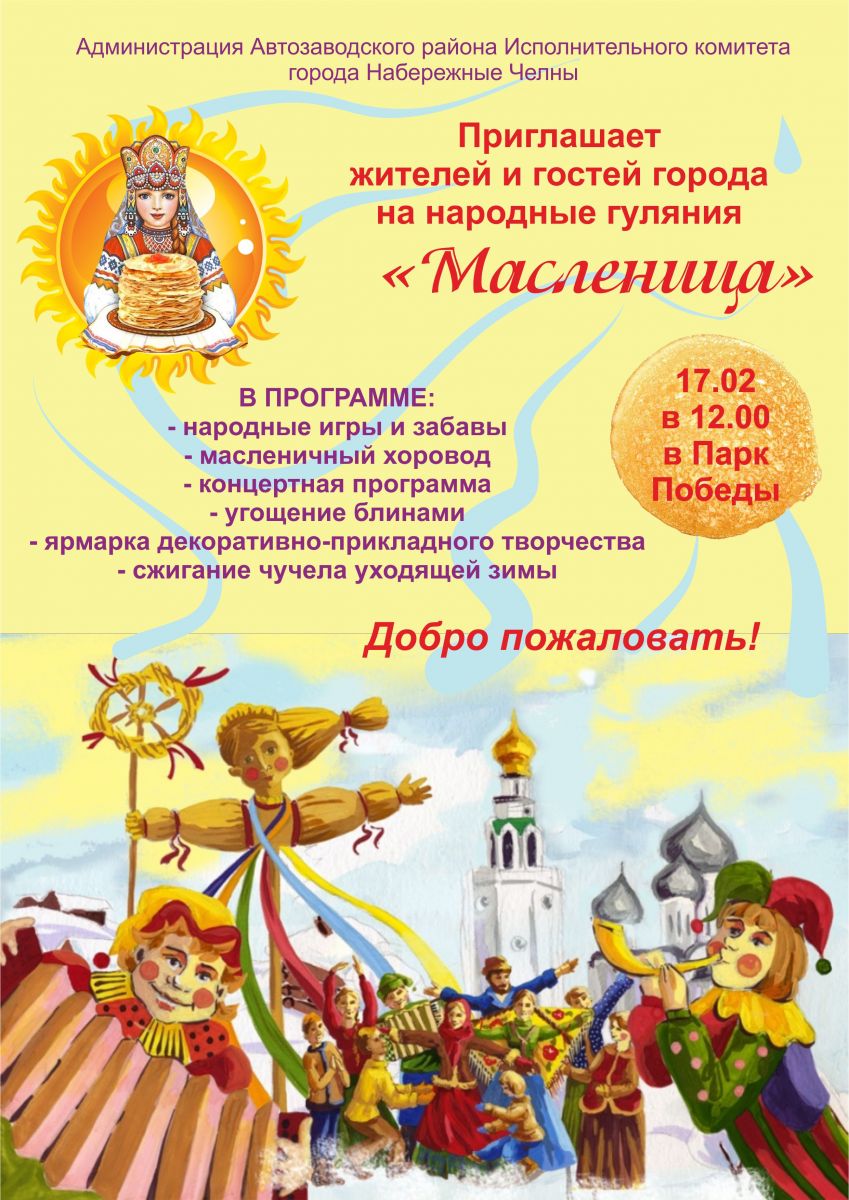 Уважаемые ребята, родители и учителя, приглашаем Вас на городской праздник «Масленица» ! 17 февраля в 12.00 в парке культуры и отдыха «Победа» состоится праздничная программа с играми и конкурсами для детей и взрослого населения.