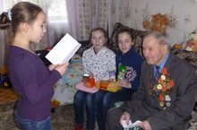 В канун 70 - и летия Победы 5 "В" класс вместе с классным руководителем, Наилёй Магдануровной, побывали в гостях у ветерана ВОВ. Поздравили его с праздником, подарили подарки и показали небольшой концерт.