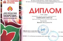 'Мин яратам сине, Татарстан!" республика бәйгесенә йомгак ясалды. Мәктәбебезнең 6 б сыйныфы укучысы Закирҗанов Тамерлан "Аңлашабыз дуслык телендә" номинациясендә 1 урын алды. Җиңүчегә һәм аны әзерләүче укытучы Минсадыкова Рүзилә Флюр кызына яңа уңышлар телибез.