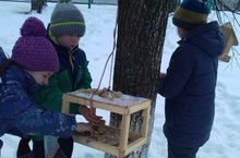 В дворе нашей школы работает птичья столовая. Сеголня птиц накормили учащиеся 3 г класса.