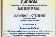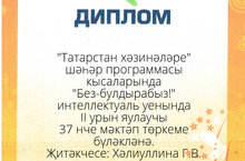 В этом году в городском смотре-конкурсе художественной самодеятельности среди образовательных учреждений дуэт Тухфатуллиной Гульнары Мударисовны и Мазитова Рамиля Рифовича с песней «Гомер агышларым» занял 2 место и 2 место у Ахматдиновой Эльзы Кадимовны в номинации «Художественное слово» со стихотворением «Кошчык» (М.Джалиль). Поздравляем вас! -