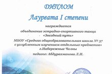 Поздравляем объединение эстрадно-спортивного танца "Звездный путь" с 1 местом в муниципальном этапе Республиканского детского фестиваля-конкурса народного творчества "БЕЗ БЕРГЭ" в номинации "Хореография" старшая возрастная группа. Руководитель Абдурахманова Л.И.